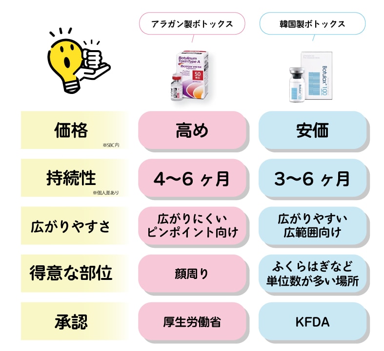 アラガン製の方が合う方も、韓国製の方が合う方もいらっしゃいます。