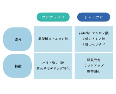 『プロファイロ』とも似ていますが、『プロファイロ』は非架橋ヒアルロン酸は含みますが、7種類のアミノ酸と3種のペプチドは含まれていません。