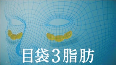 加齢・眼精疲労などが原因で支えきれなくなった脂肪が押し出され、下まぶたにふくらみが形成されます。