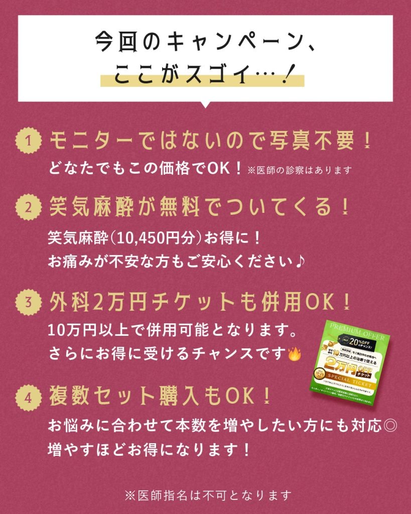 • ✔︎ 外科2万円チケットと併用OK🎟️