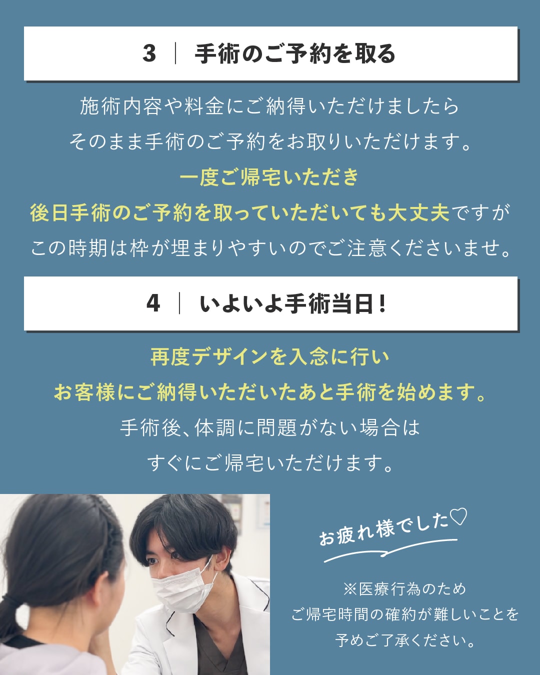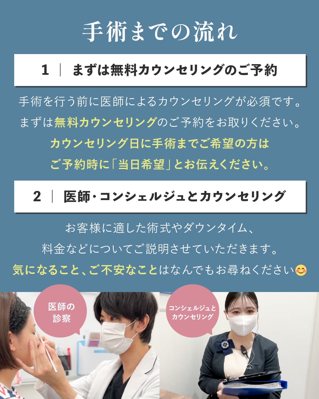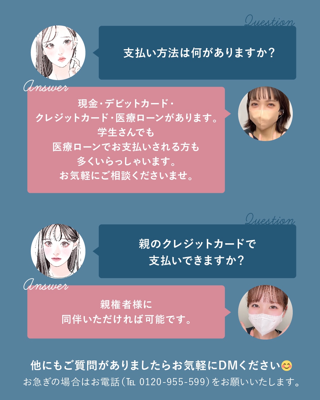 当院では、人気の二重整形(目元の整形)をはじめ、クマ取りや糸リフト等の若返り施術、鼻整形、医療ダイエット、医療脱毛(全身脱毛、VIO脱毛・メンズ脱毛)、医療ハイフ、シミ取り、ダーマペン、婦人科形成(女性器の整形)、美容皮膚科治療などを取り扱っております。