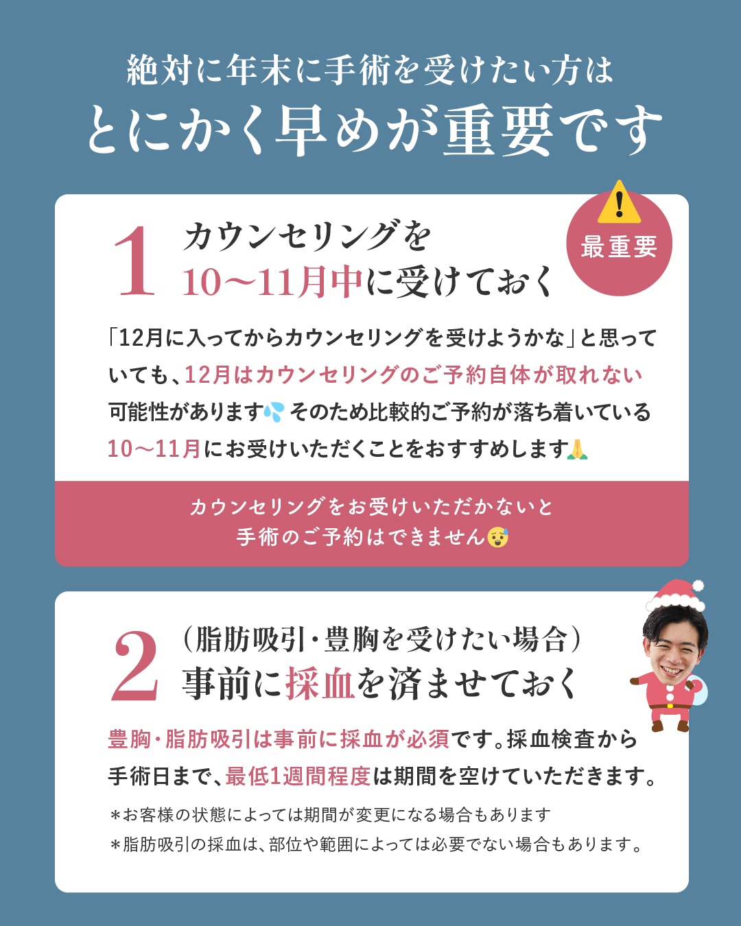 ⚠️【最重要】年末手術は今すぐ相談! 医師のシフト枠、早い者勝ちで埋まります!