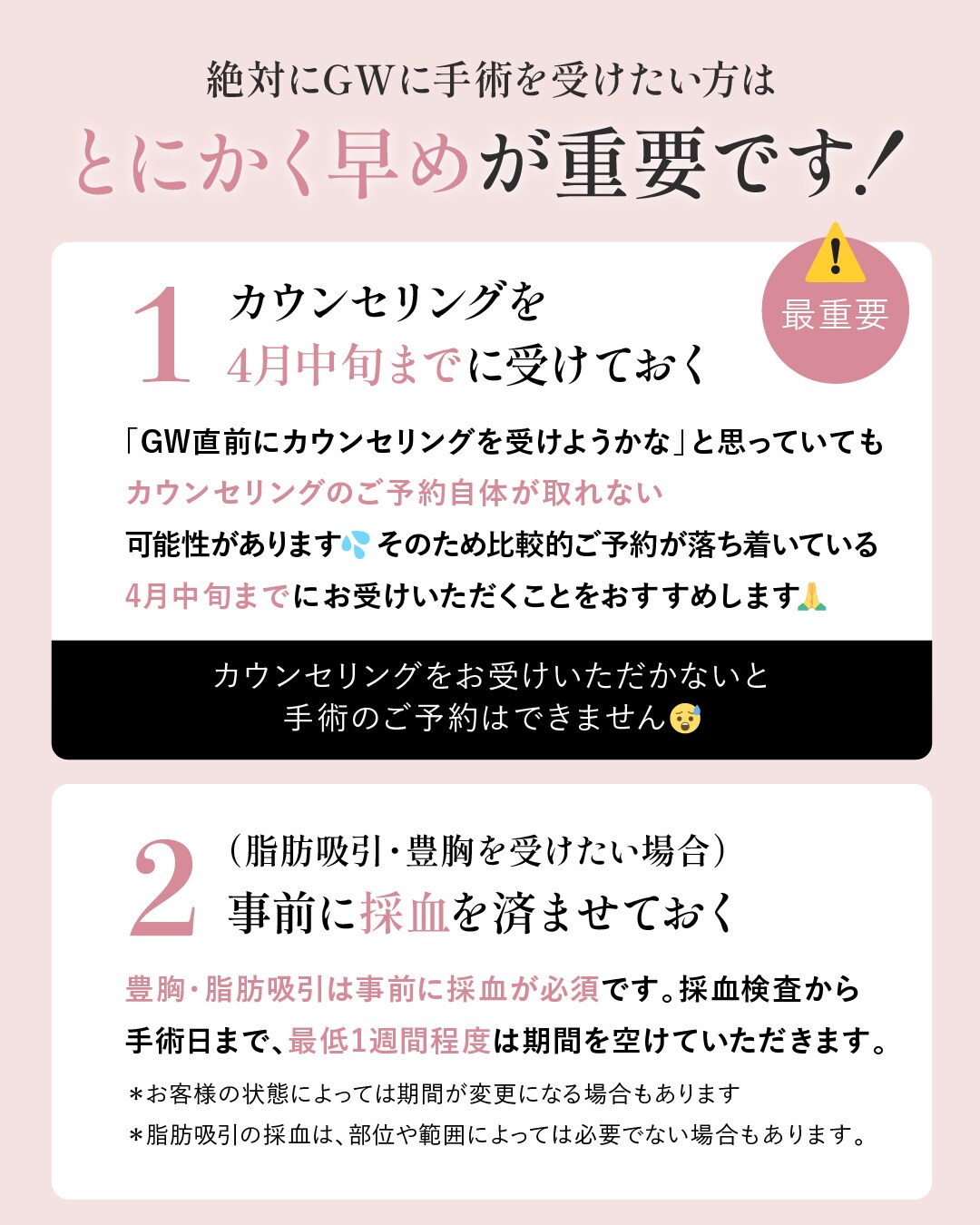 【予約受付開始‼️】GWに手術をご検討中の方へ