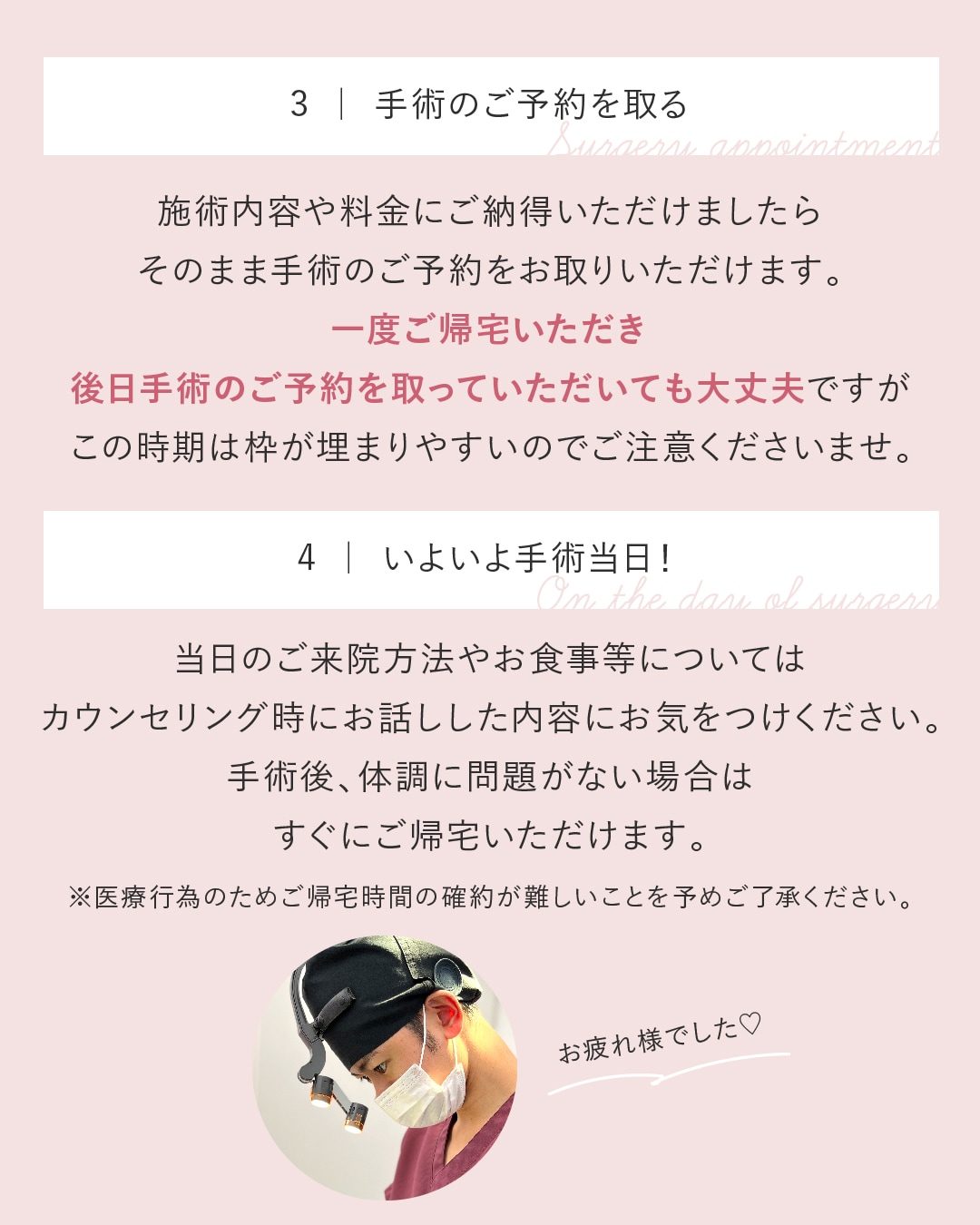 普段以上の混雑が予想されるので、カウンセリング当日に手術を受けられないことも💦