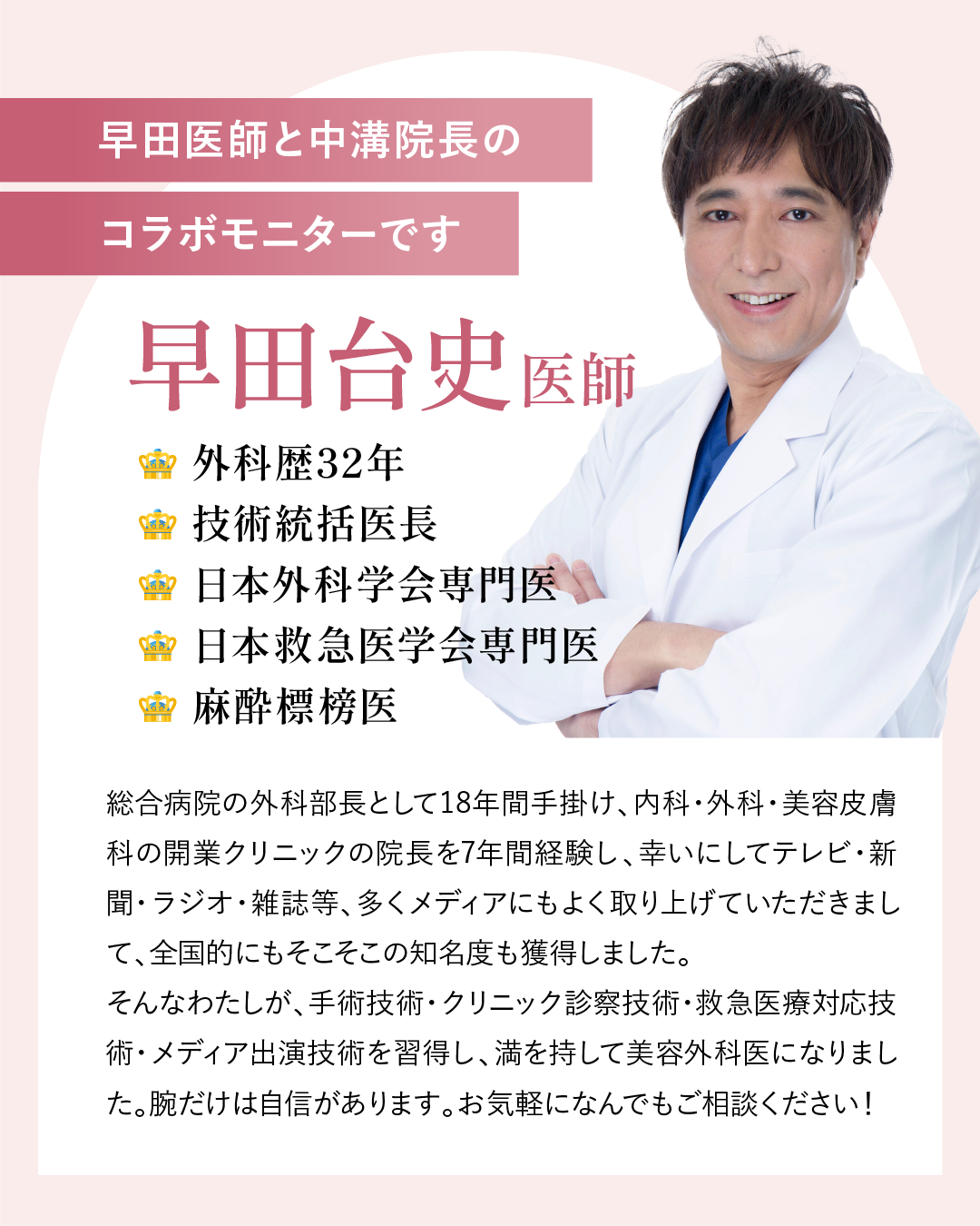 中溝院長と技術指導医長の早田医師が2名体制で手術をいたします🧑‍⚕️早い者勝ちなので今すぐチェックしてくださいね👇