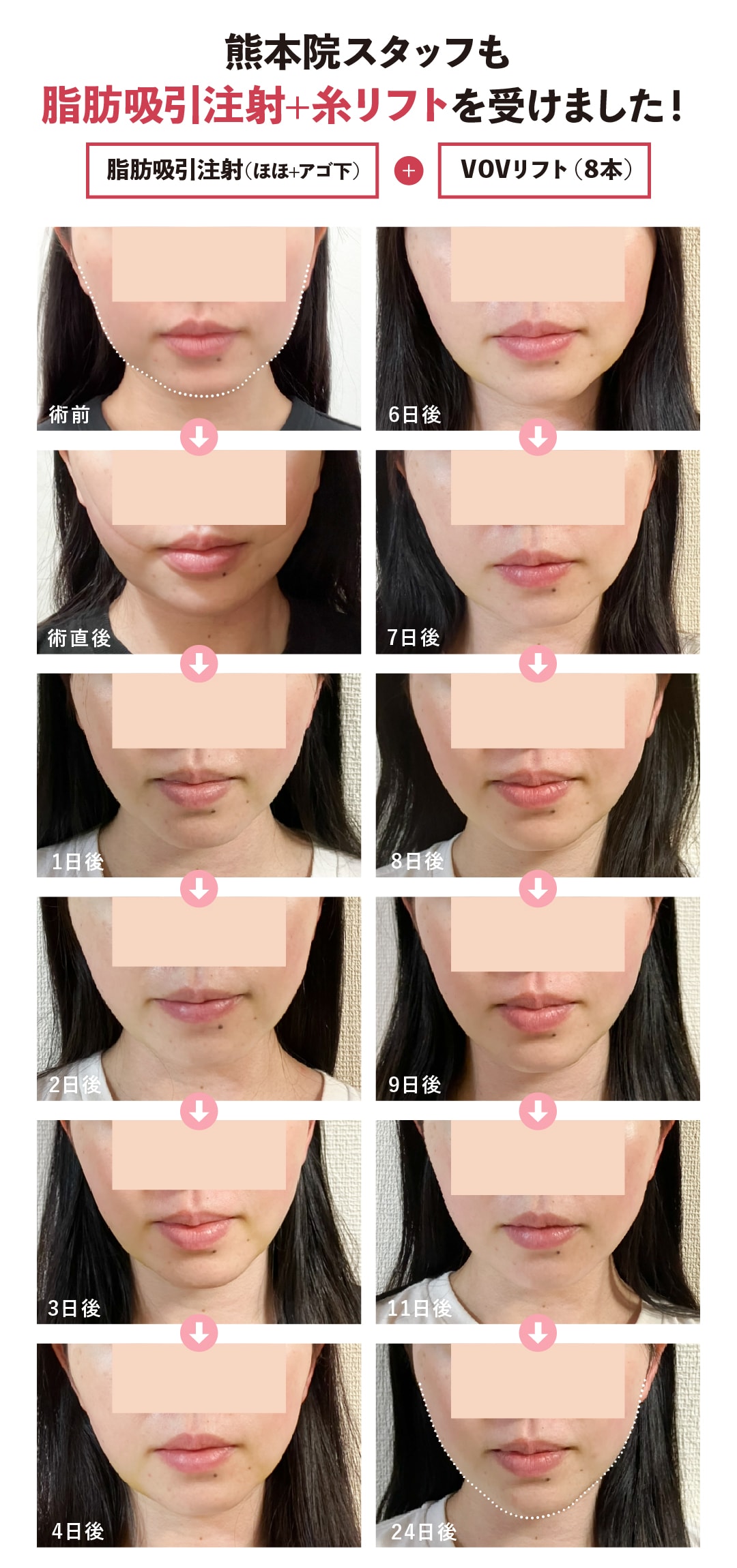 ※脂肪吸引注射を併用しているので口元の内出血が目立っています