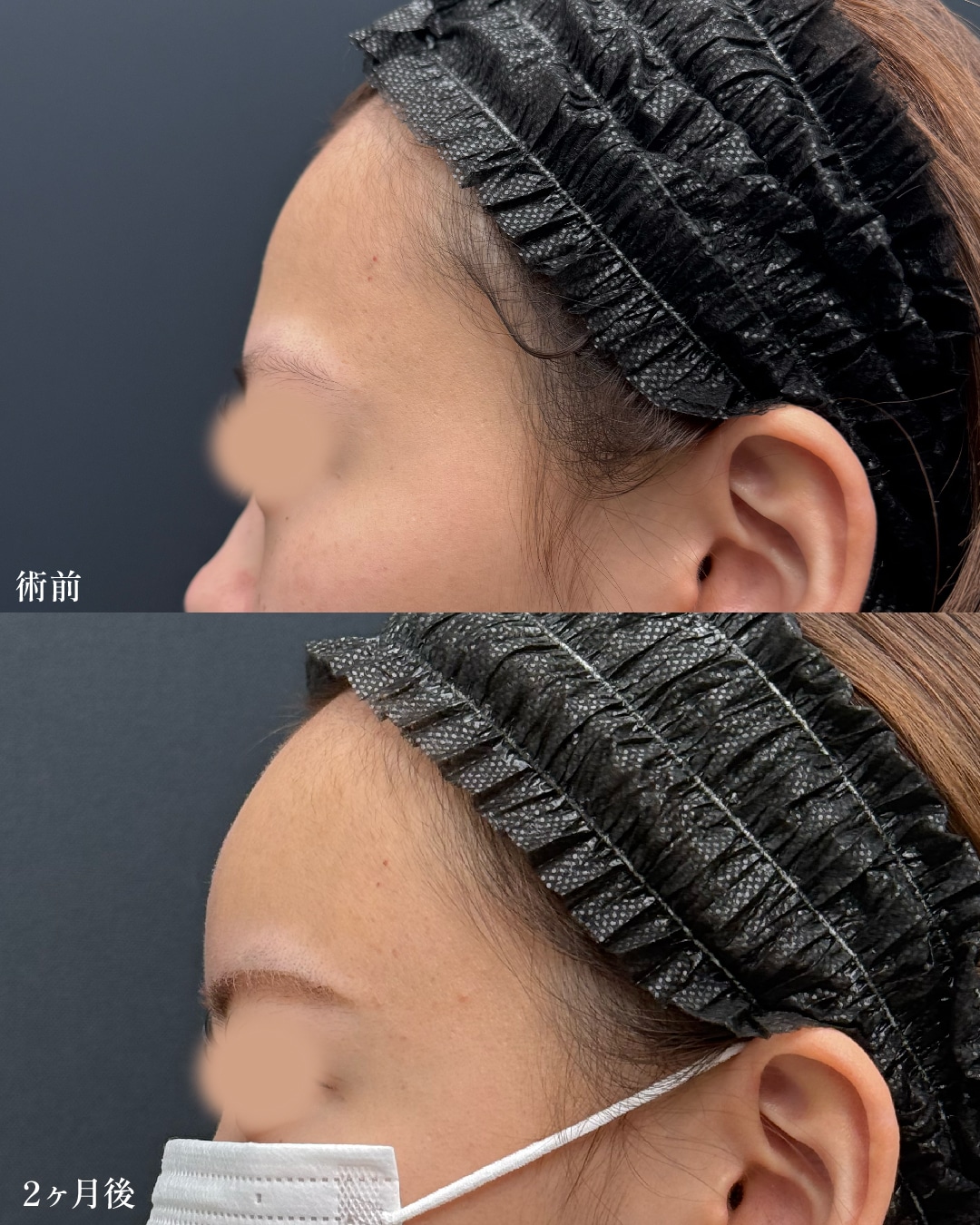 おでことこめかみに脂肪を注入し、理想的な丸みのあるおでこになりました。
