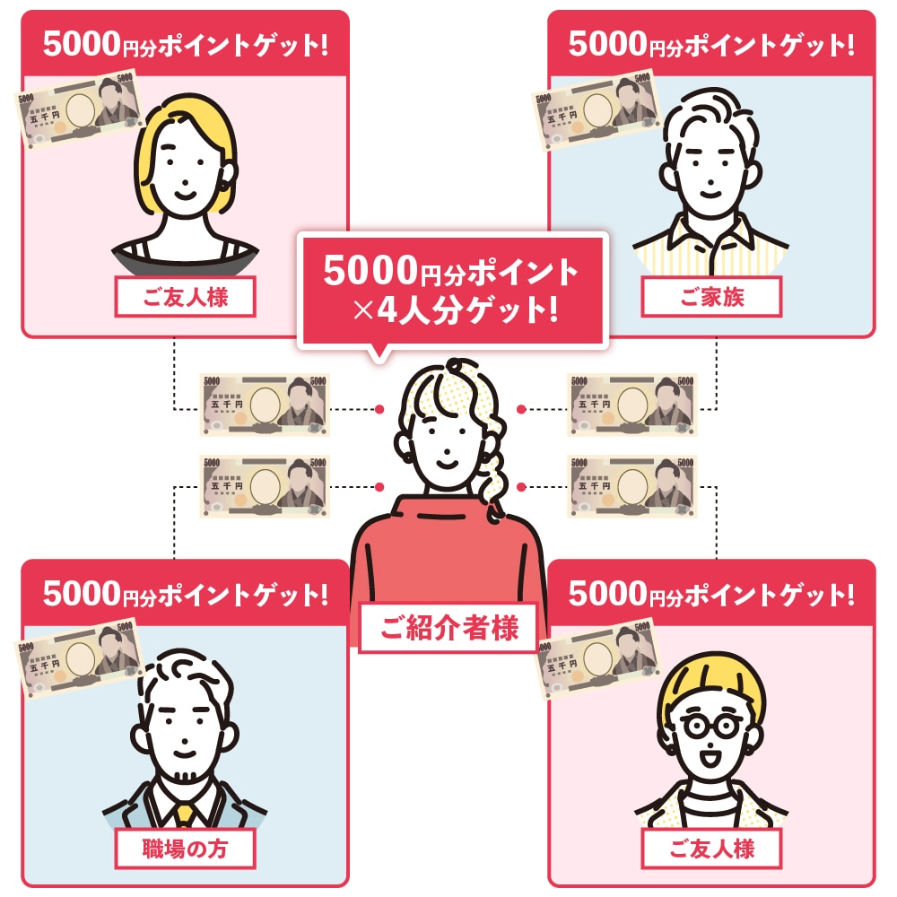 この制度を活用すれば、あなたもお友達も、それぞれ5,000円分として使えるポイントがもらえる、とってもお得な制度なんです!
