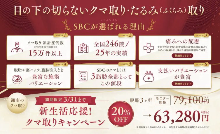 SBCメディカルグループでは、2018年6月1日に施行された医療広告ガイドラインを受け、ホームページ上からの体験談の削除を実施しました。また、症例写真を掲載する際には施術の説明、施術のリスク、施術の価格も表示させるようホームページを全面的に修正しております。当ホームページをご覧の患者様、お客様にはご迷惑、ご不便をおかけ致しますが、ご理解のほどよろしくお願い申し上げます。