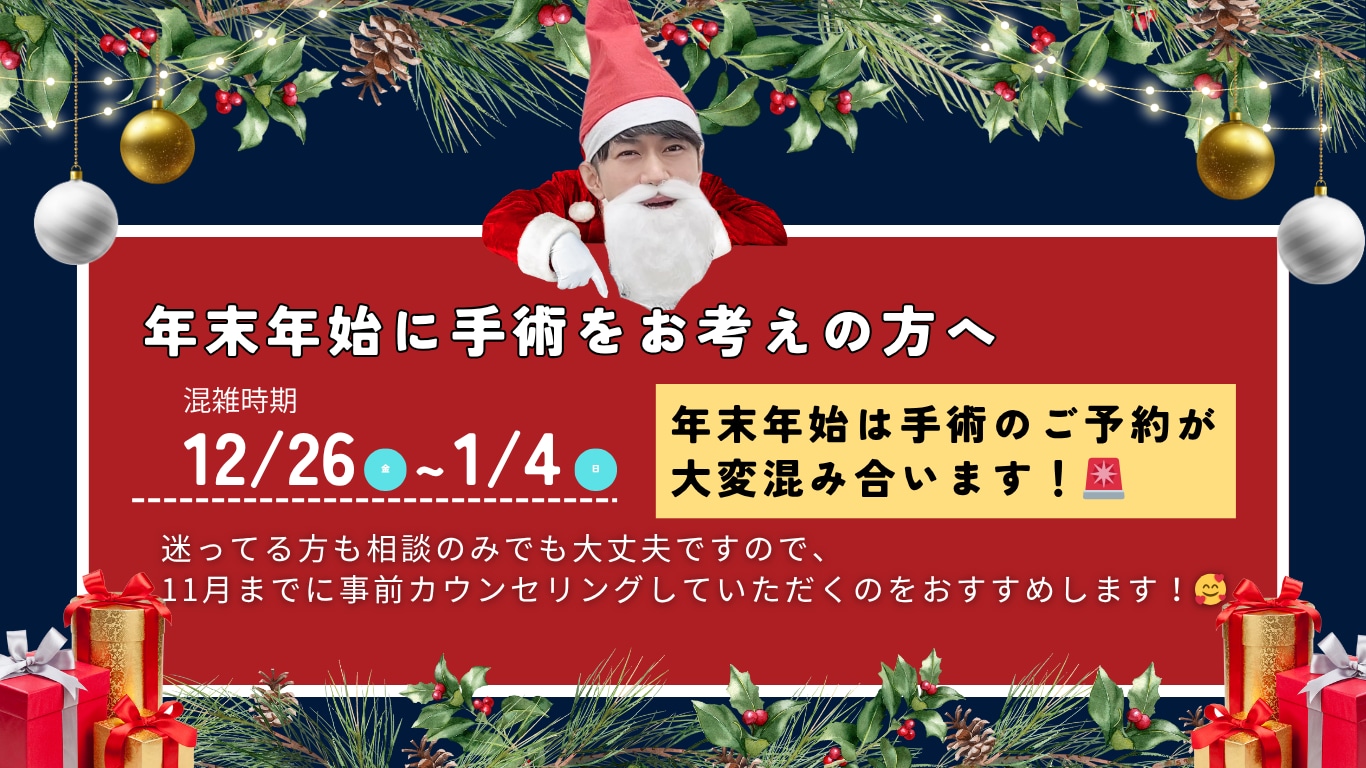AM9:00~PM6:00(最終カウンセリング予約PM4:30まで) ※休診日:元旦 |
