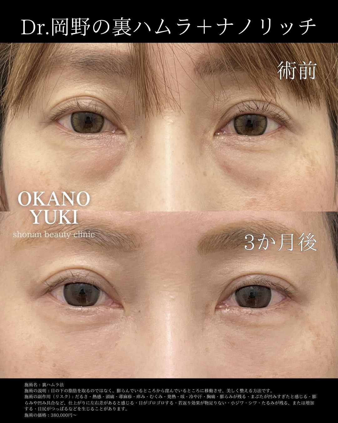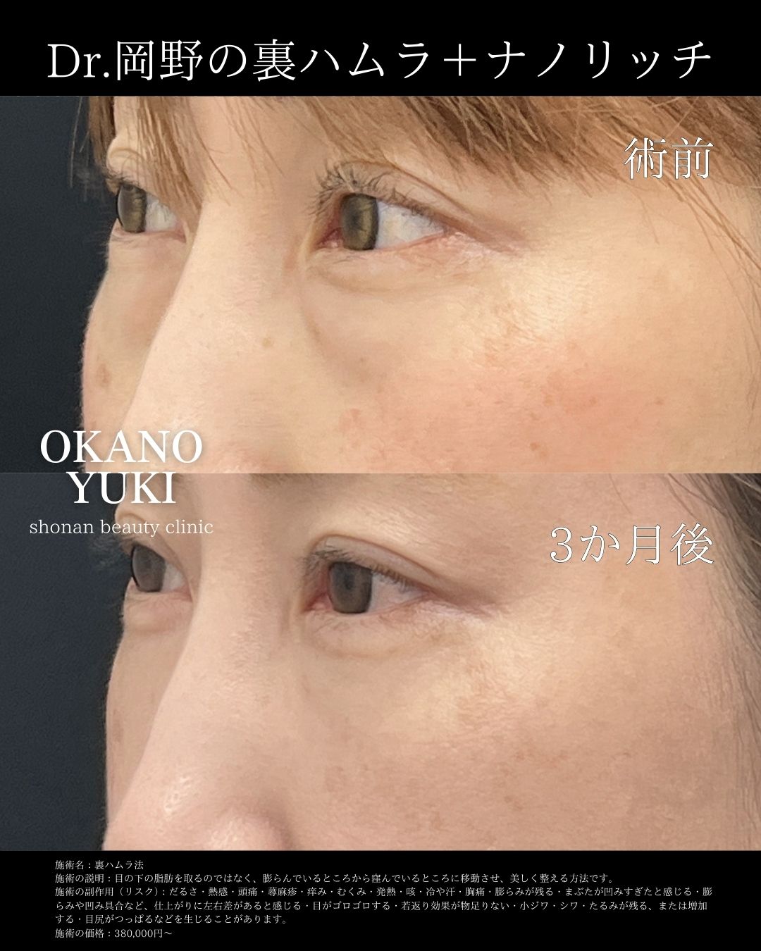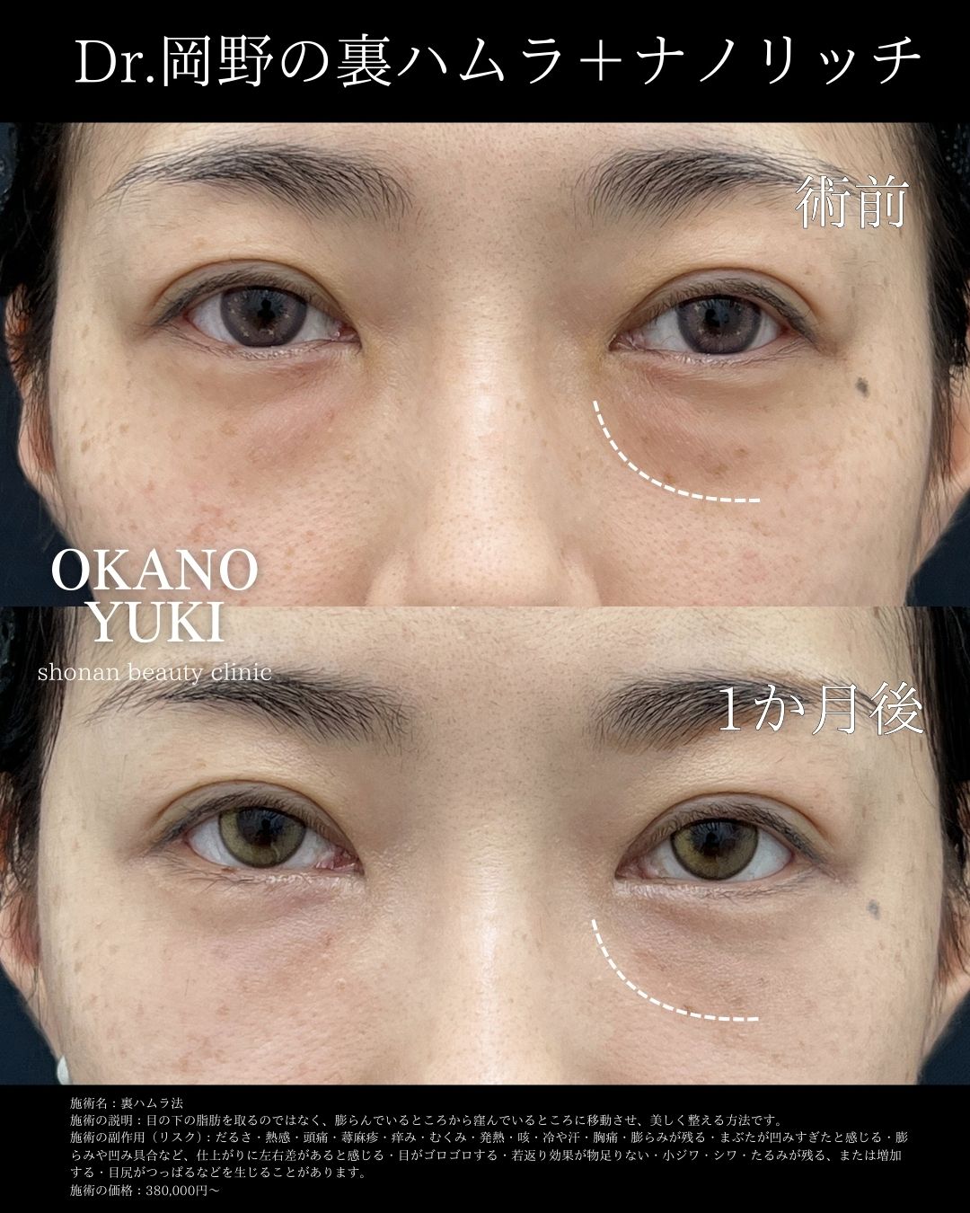 「目の下切らないクマ・たるみ取り+ナノリッチ(脂肪注入)」