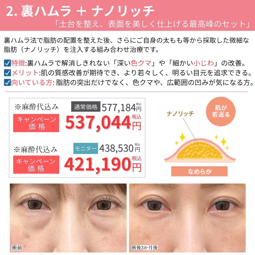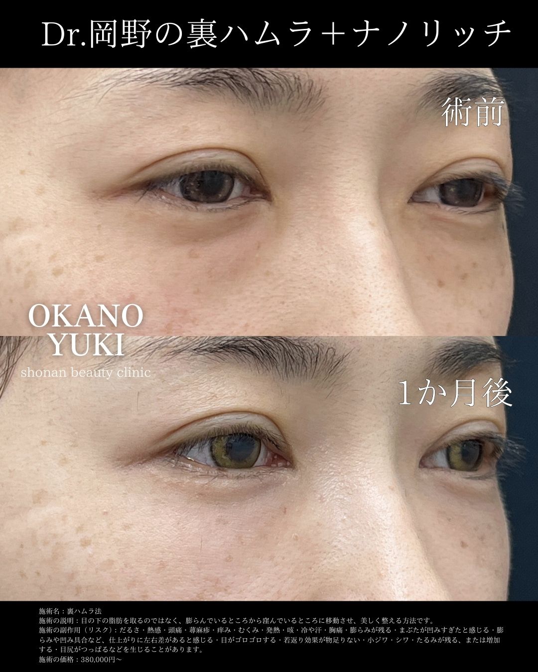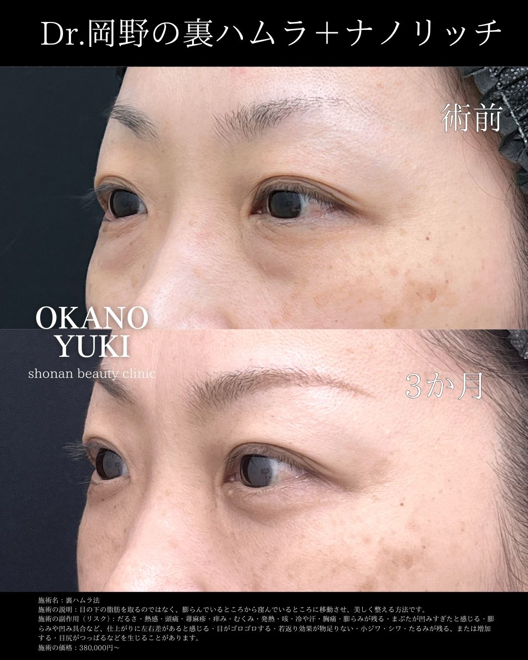 「目の下切らないクマ・たるみ取り+ナノリッチ(脂肪注入)」