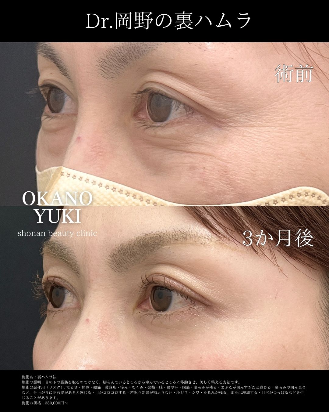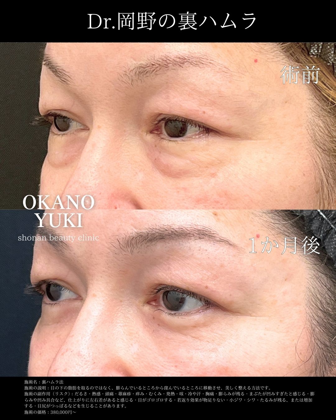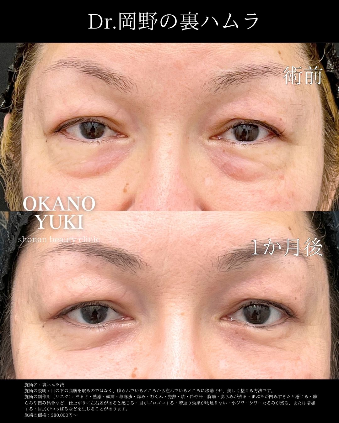 対象施術:目の下切らないクマ・たるみ取り、裏ハムラ