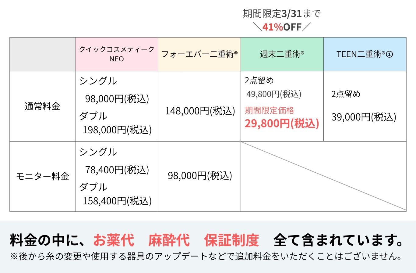 現在新生活応援キャンペーンで3/31まで「週末二重術」がお得なキャンペーン中です!🌸