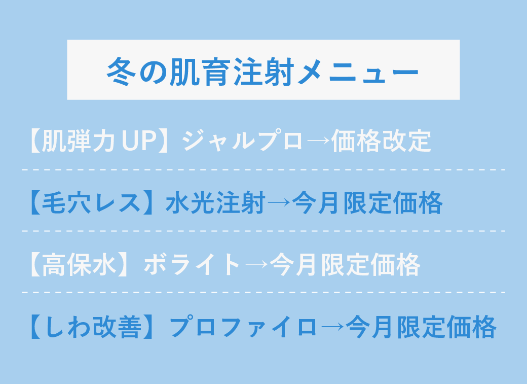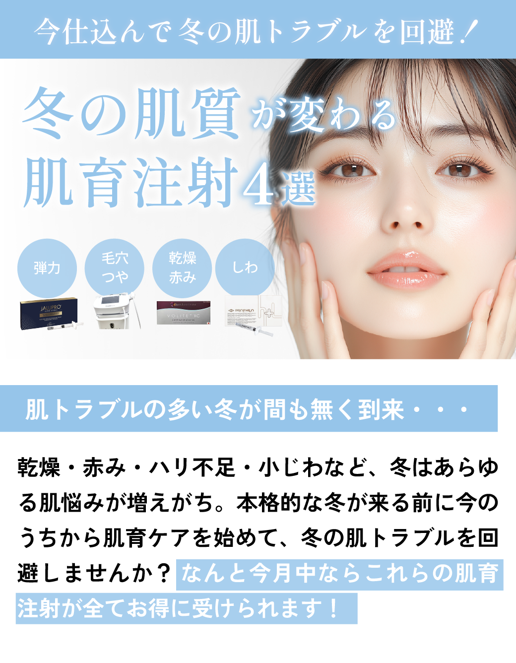 【冬の肌トラブル回避】冬の肌質が変わる肌育注射4選❄️