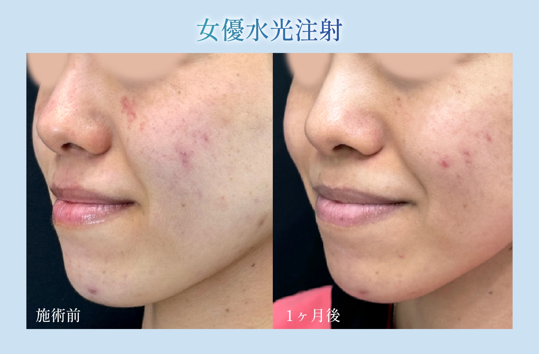 リジュランの皮膚の再生・抗炎症作用によりニキビ跡として残っていた赤みが劇的に緩和しました。