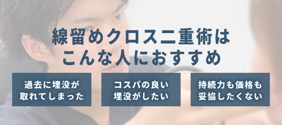 「持続性が高く、保証もしっかりした『線留めクロス二重』を受けたいけれど、費用はできるだけ抑えたい…」