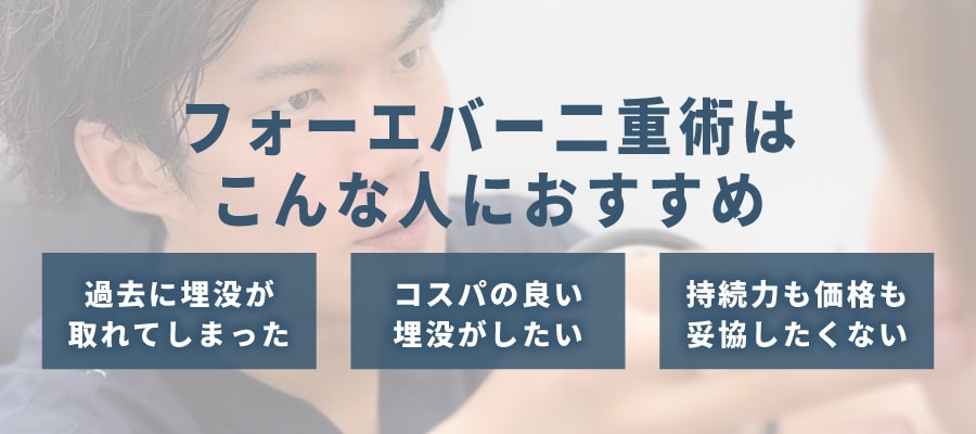 「持続性が高く、保証もしっかりした『フォーエバー二重術』を受けたいけれど、費用はできるだけ抑えたい…」
