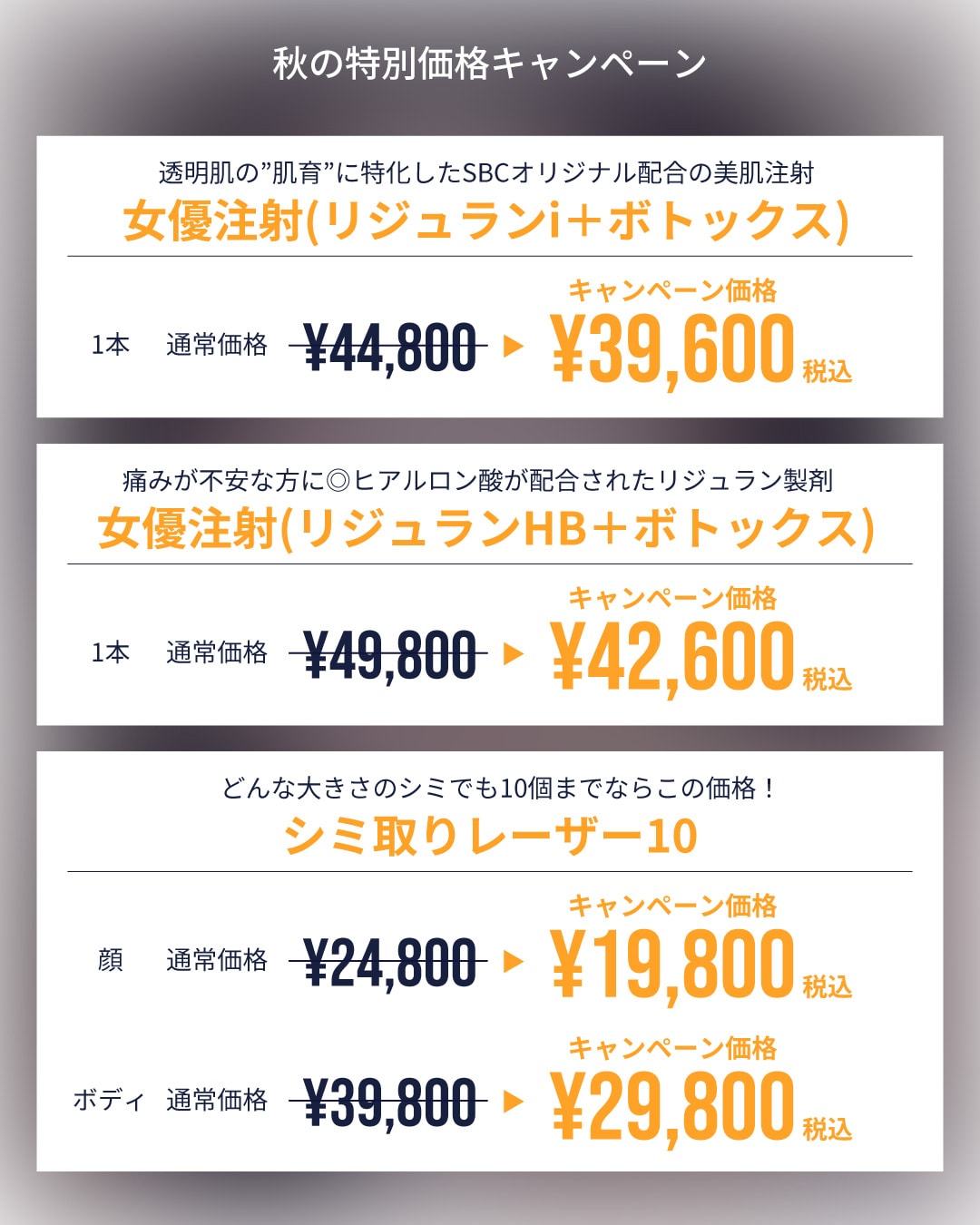 シミ取りをはじめとした人気メニューが特別価格に♡