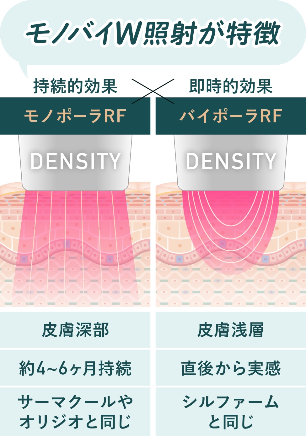 デンシティの最大の強みは、この2種類を同時に照射できること。
