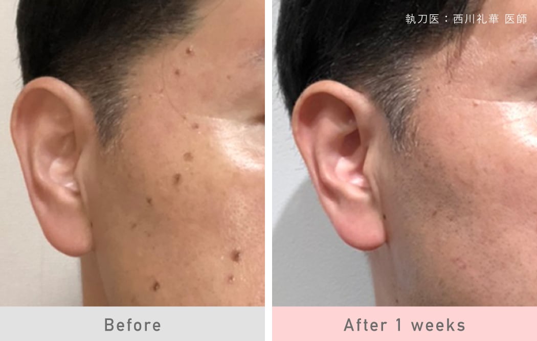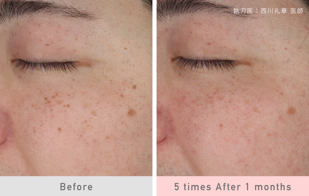 熱ではなく「衝撃波」でメラニンを粉砕する最新のピコレーザーを使用するため、肌への熱ダメージを抑えながら、色素を細かく破壊できます。 顔の印象を一気に若返らせたい方、一度の施術で大きな変化を求める方に選ばれています。