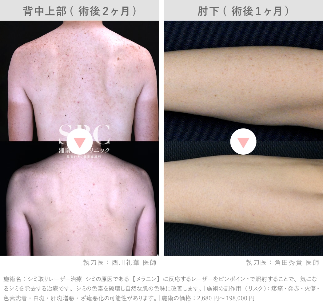 一つの機械しか置いていないクリニックでは「その機械に合うシミ」しか治せませんが、京都院では「あなたのシミに合わせて、ベストな機械を選ぶ」ことが可能です。 お顔の複雑なシミはもちろん、背中やデコルテなどのボディのシミ取りまで、妥協のない治療をご提供します。