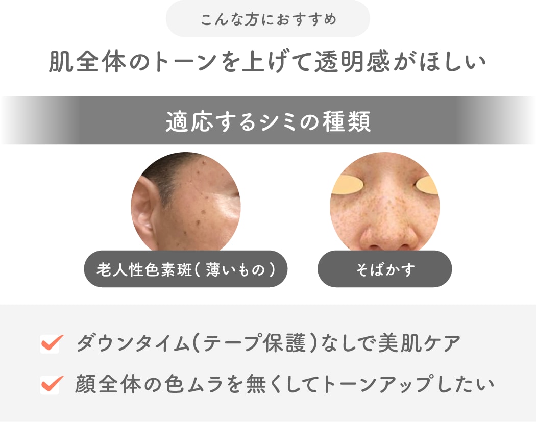 「シミも取りたいけれど、肌全体のくすみも飛ばしたい」という方に最適です。