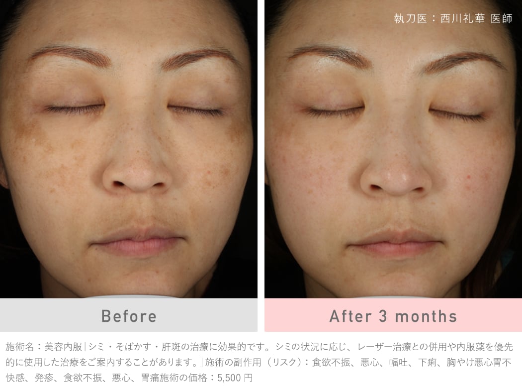 特に日本人の肌に多い「肝斑(かんぱん)」の治療においては、レーザーだけでなく内服薬の併用が必須レベルで重要です。