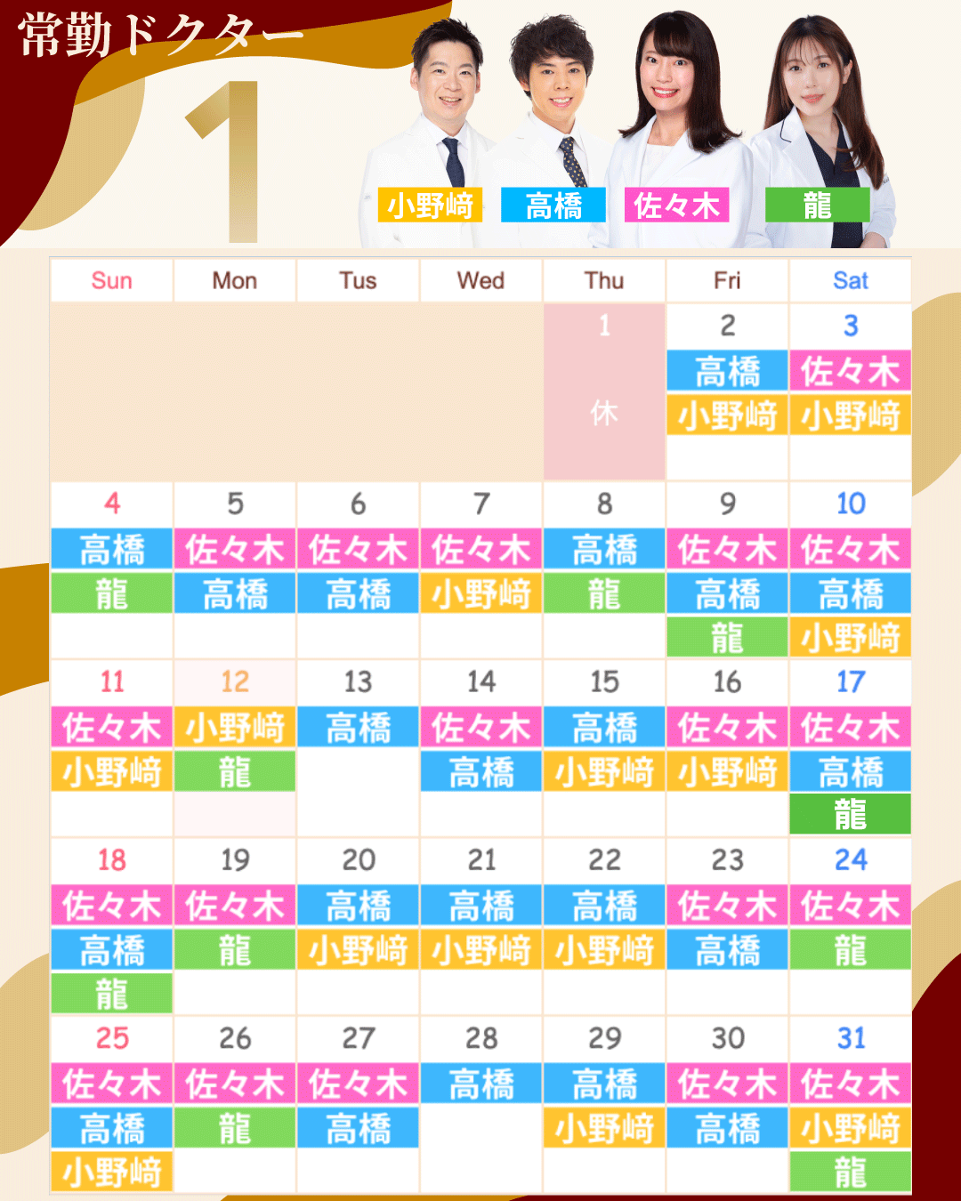 9:00~18:00(最終カウンセリング予約/16:30) ※元旦のみ休診 |