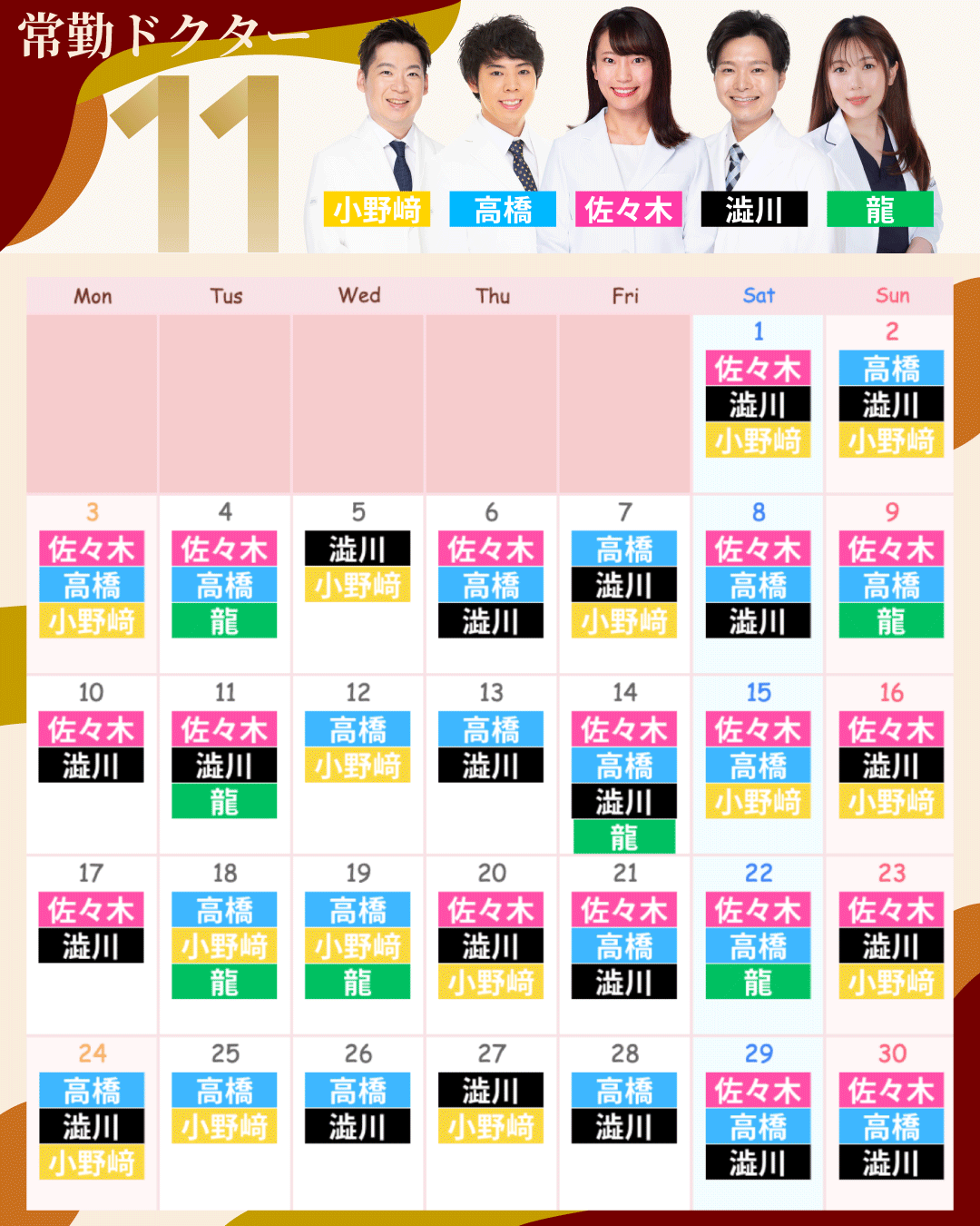 9:00~18:00(最終カウンセリング予約/16:30) ※元旦のみ休診 |