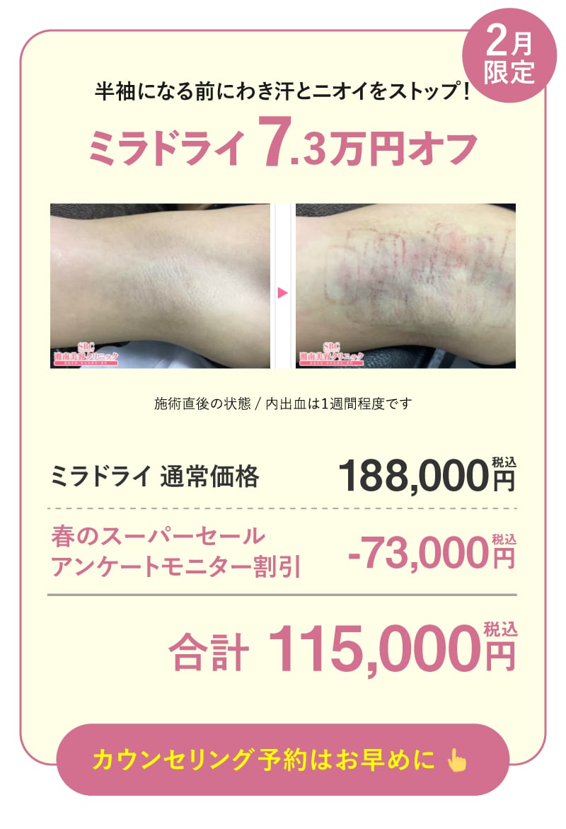 SBCメディカルグループでは、2018年6月1日に施行された医療広告ガイドラインを受け、ホームページ上からの体験談の削除を実施しました。また、症例写真を掲載する際には施術の説明、施術のリスク、施術の価格も表示させるようホームページを全面的に修正しております。当ホームページをご覧の患者様、お客様にはご迷惑、ご不便をおかけ致しますが、ご理解のほどよろしくお願い申し上げます。