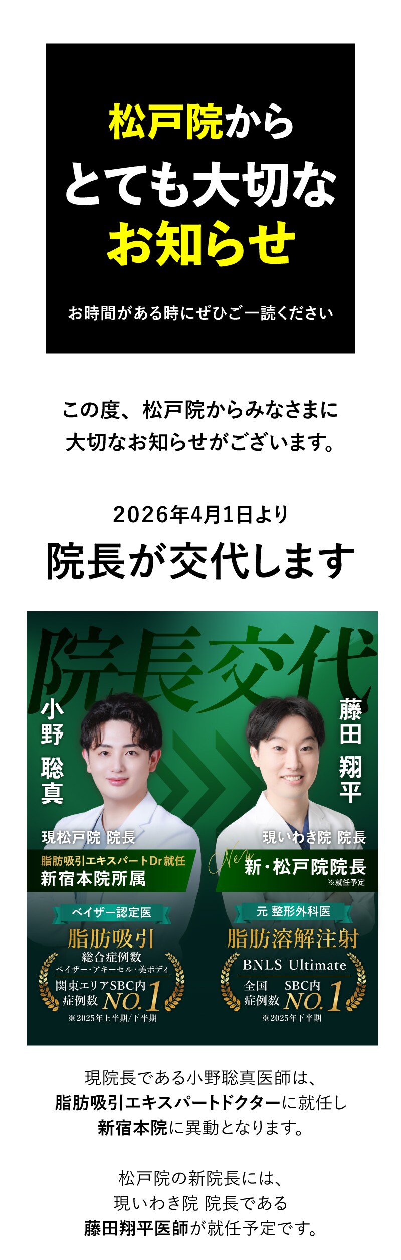 湘南美容クリニック 松戸院院長就任