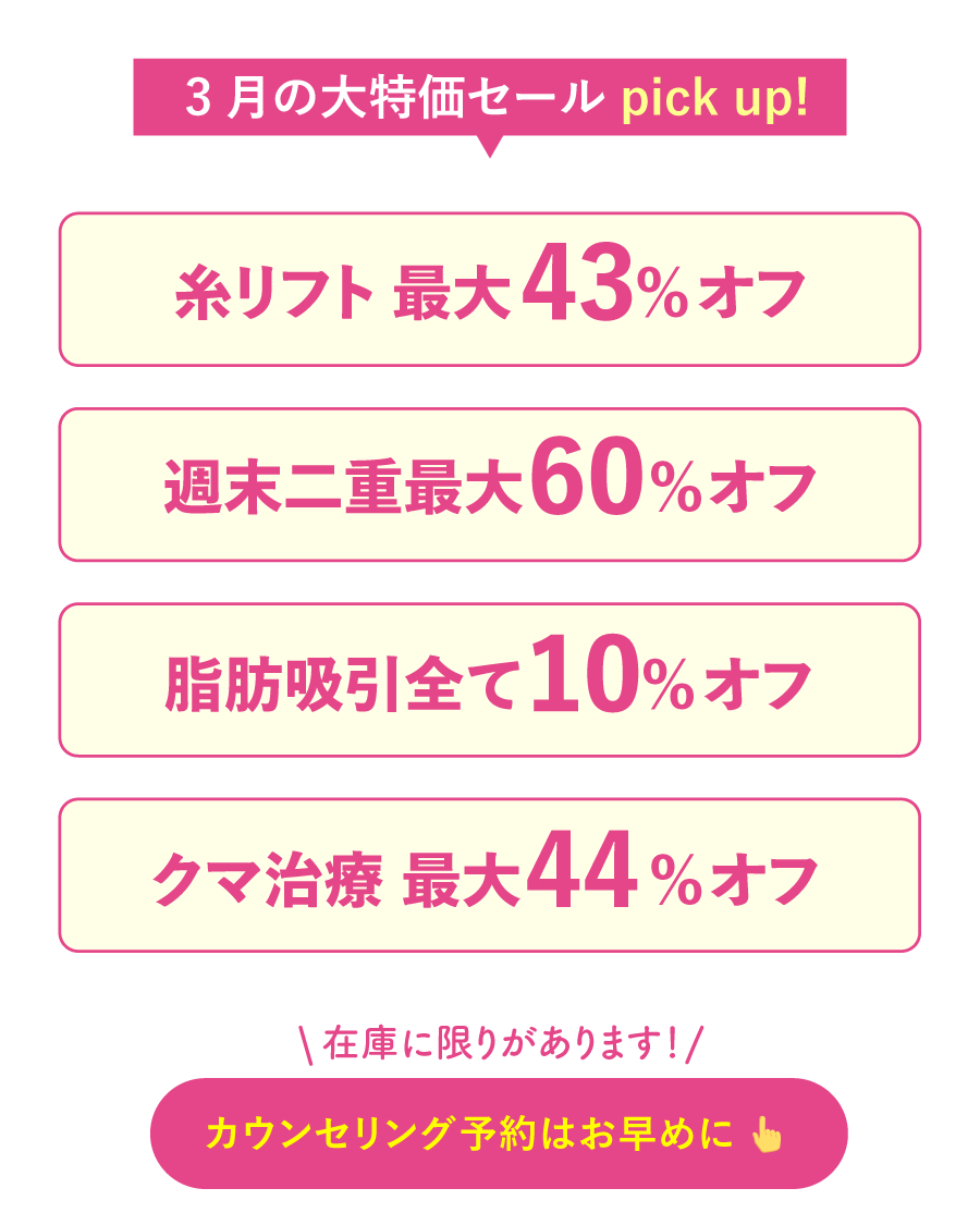 クリニック案内 千葉県のクリニック 湘南美容クリニック 松戸院 【迷ったらコレを見て!】外科治療キャンペーン一覧