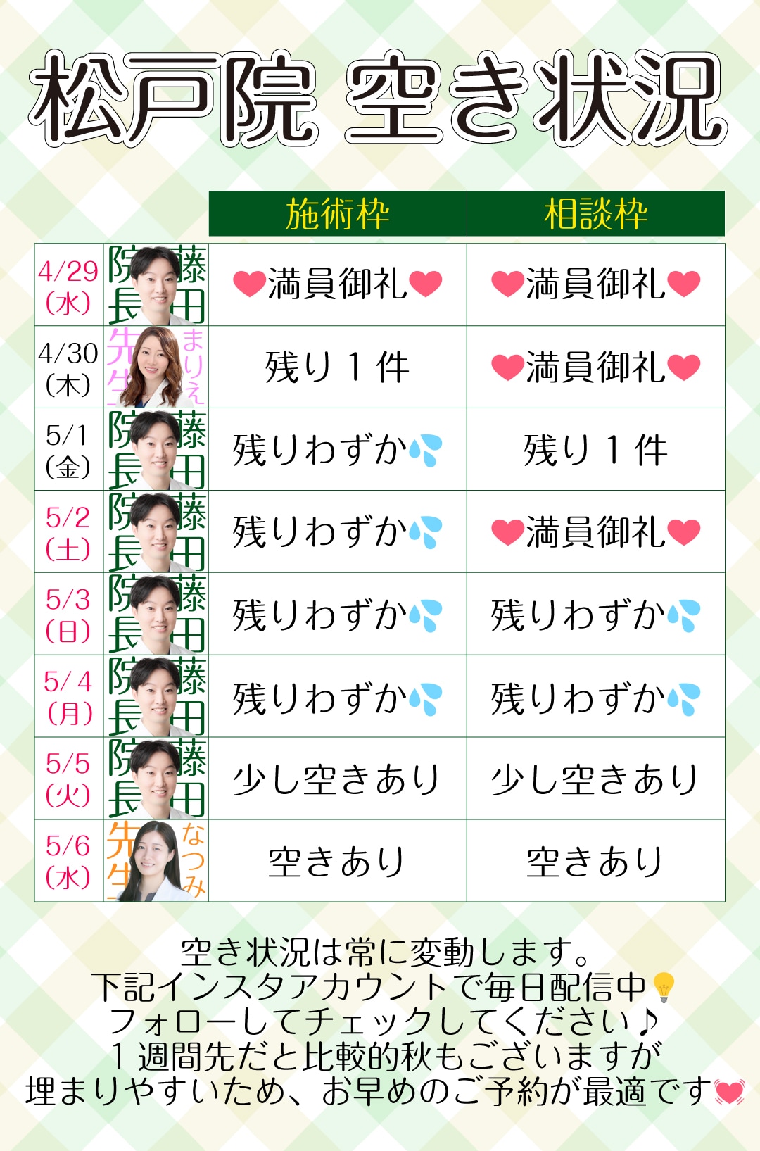 随時更新中!ゴールデンウィークの空き情報&おすすめ施術♪