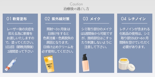 シミ取りレーザーは紫外線対策が必要不可欠のため、夏前の施術を推奨しております。
