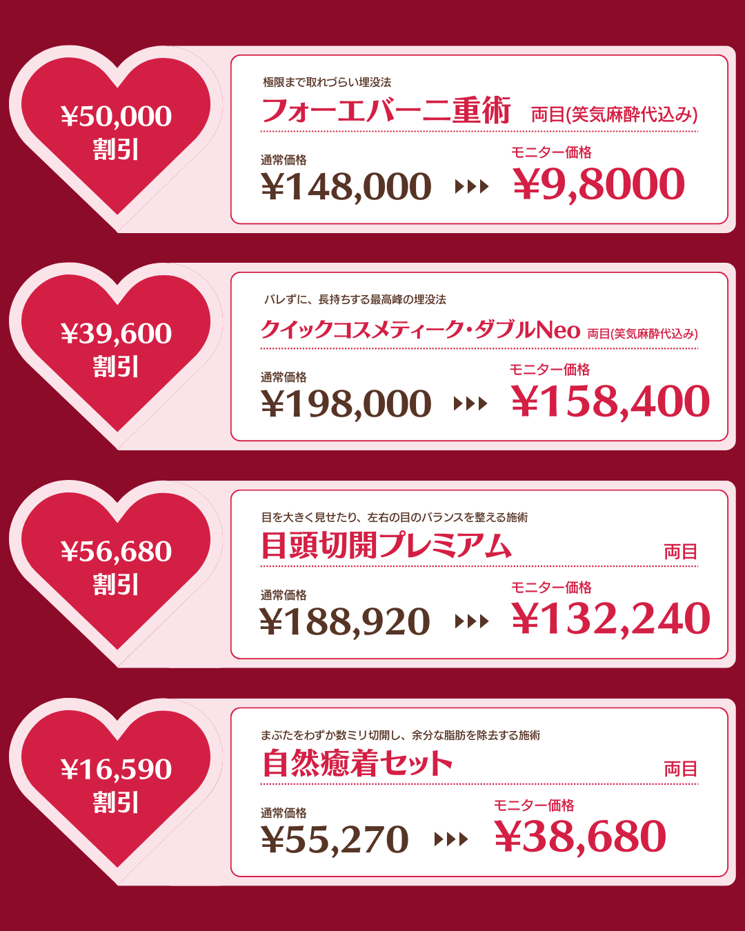 痩身、小顔治療、二重術、クマ取りなど幅広い施術を取り扱っております。