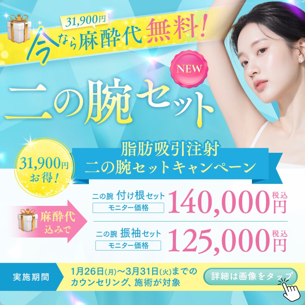 なんと二の腕の脂肪吸引注射の麻酔代0円!!!!!