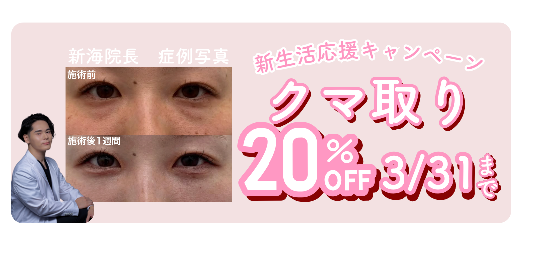 目の下の切らないクマ・たるみ(膨らみ)取りと裏ハムラ法が20%OFFになるキャンペーンを開催しています!