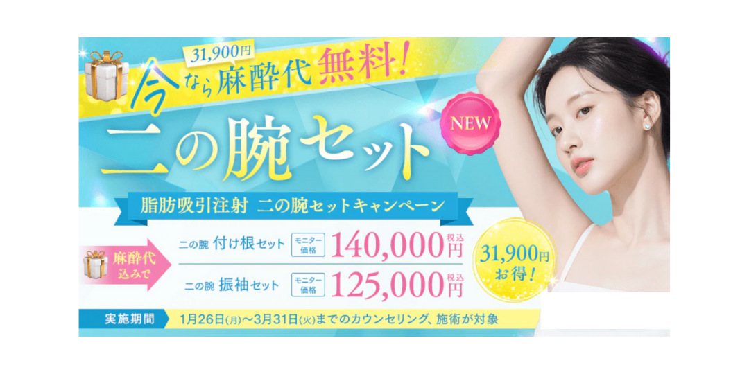 二の腕の脂肪吸引注射がお得な価格に!そして麻酔代”無料”に!