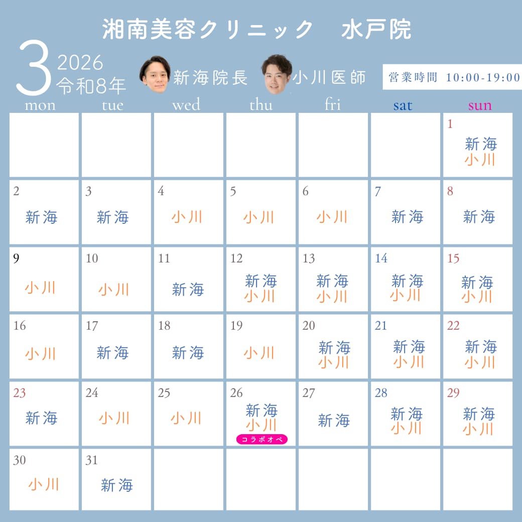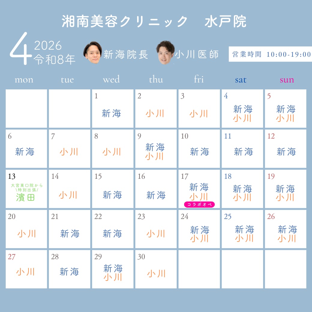 湘南美容クリニック水戸院では眉下リフト、クマ取りをはじめとした若返り全般、シミ取り・医療ハイフなどの美容皮膚科治療、医療脱毛(ヒゲ脱毛・VIO脱毛など)、医療ダイエット、二重整形、小顔治療など幅広い施術を取り扱っております。JR「水戸駅」北口から徒歩1分です♪