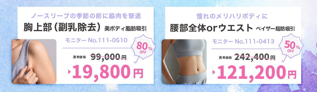 • 施術によっては上記の他に料金が発生します:麻酔代や着圧ガードル等、施術により追加料金が発生する場合があります。