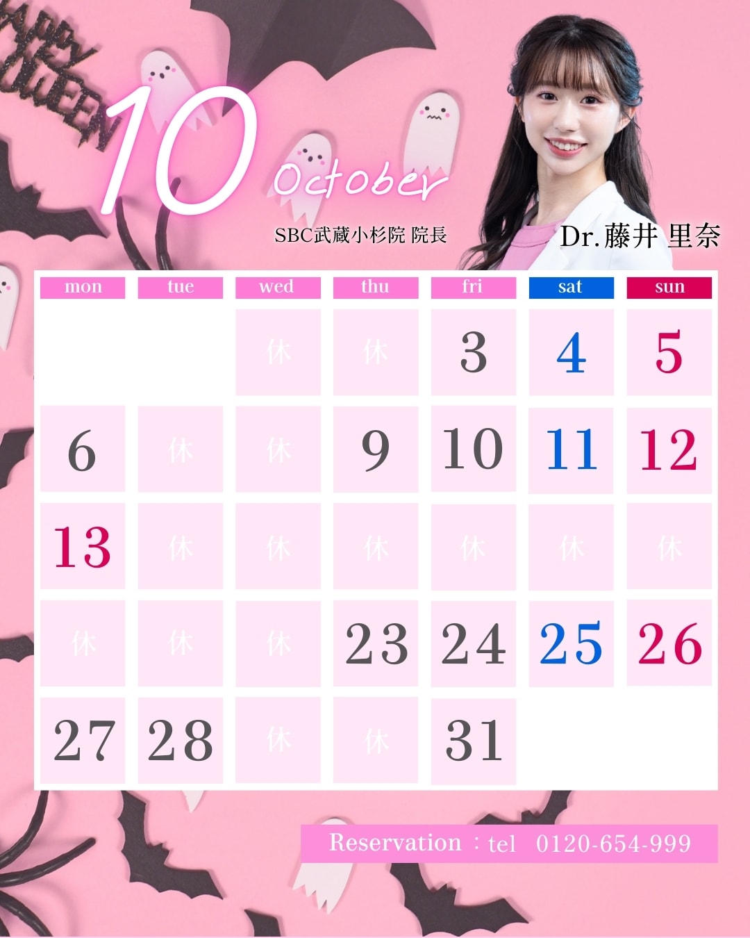 藤井里奈院長を指名する場合、10月の施術できる日はもう7日間しかありません😭