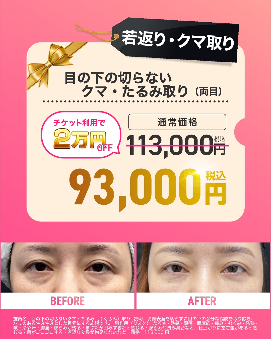 ◾️目の下の切らないクマ・たるみ取り(両目)