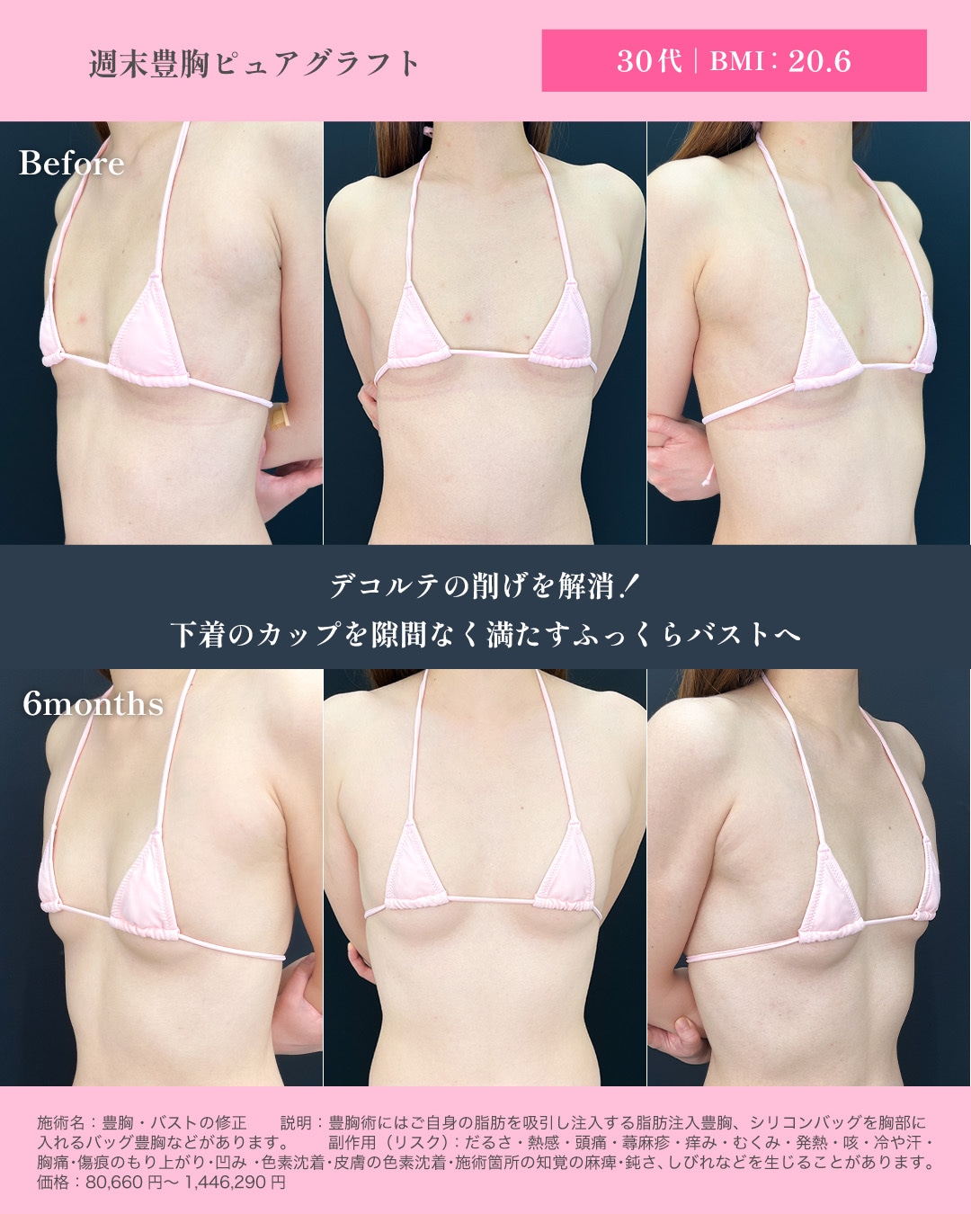 【週末豊胸ピュアグラフト】術後6ヶ月の症例