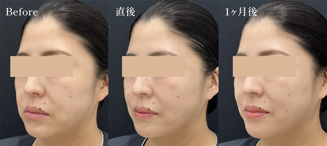 直後からフェイスラインの引き上がり効果を実感。1ヶ月かけてさらに引き締まった印象に!