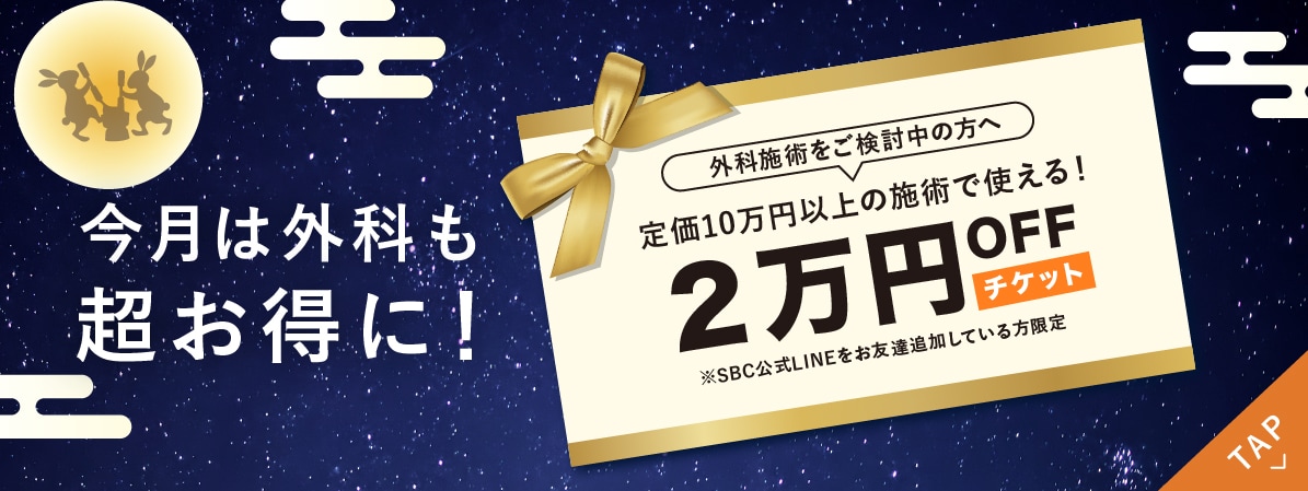 SBCメディカルグループでは、2018年6月1日に施行された医療広告ガイドラインを受け、ホームページ上からの体験談の削除を実施しました。また、症例写真を掲載する際には施術の説明、施術のリスク、施術の価格も表示させるようホームページを全面的に修正しております。当ホームページをご覧の患者様、お客様にはご迷惑、ご不便をおかけ致しますが、ご理解のほどよろしくお願い申し上げます。