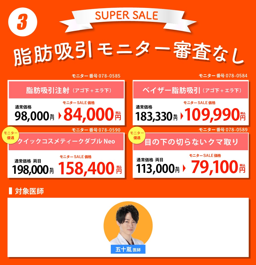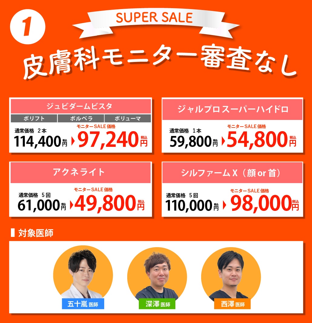 ・皮膚科外科のモニター審査なしの施術もモニター審査はございませんが、医師による施術が適応かの診断はございます。