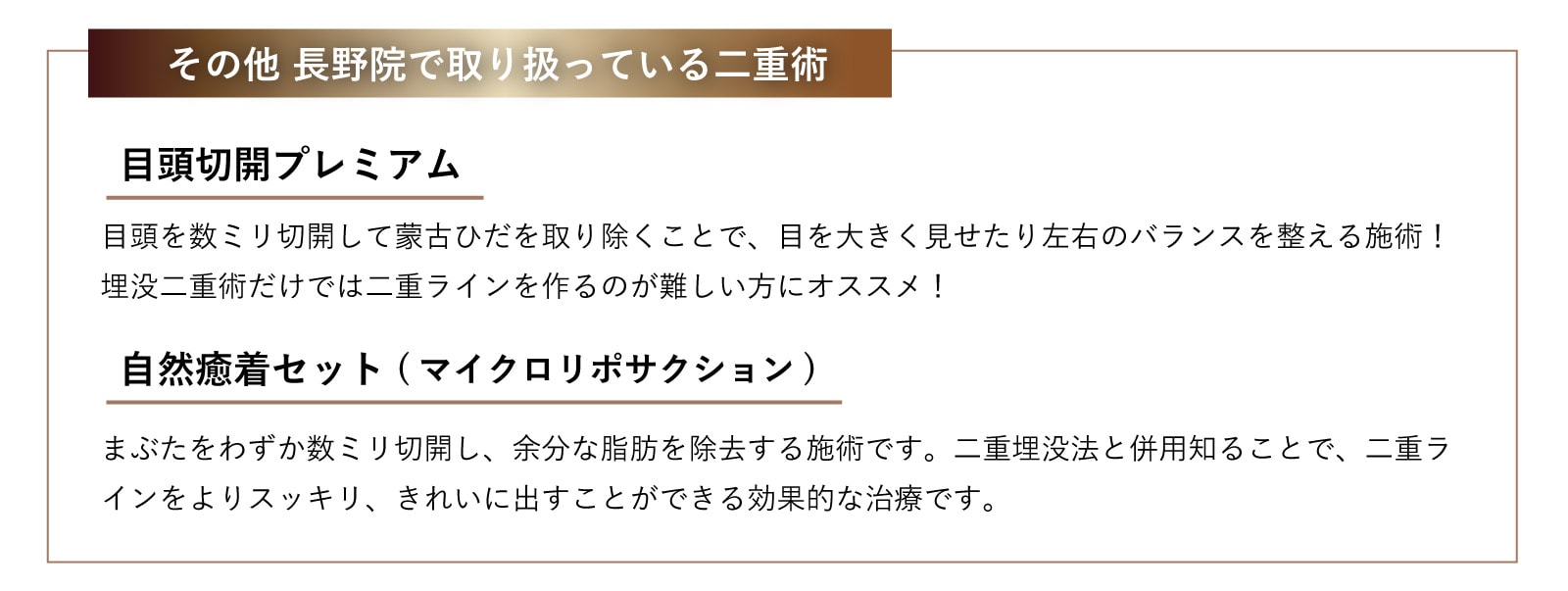 長野院には二重術で数々の賞を受賞した全国トップクラスの医師が在籍。
