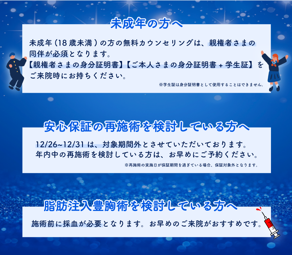 AM10:00~PM7:00(最終カウンセリング予約PM5:30まで) ※休診日:月曜・木曜 |