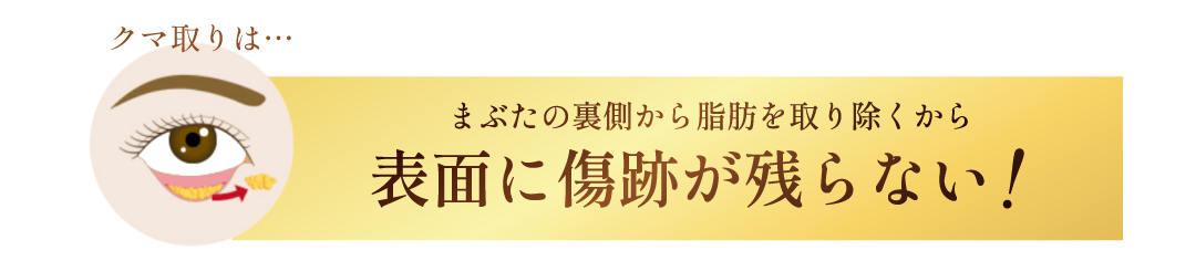 皮膚のたるみがとても強い方は皮膚がしぼんでしまい、その皮膚によってクマのように見えてしまうことがあるため、その場合には切開をしないと変化を出すのが難しいことがあります。